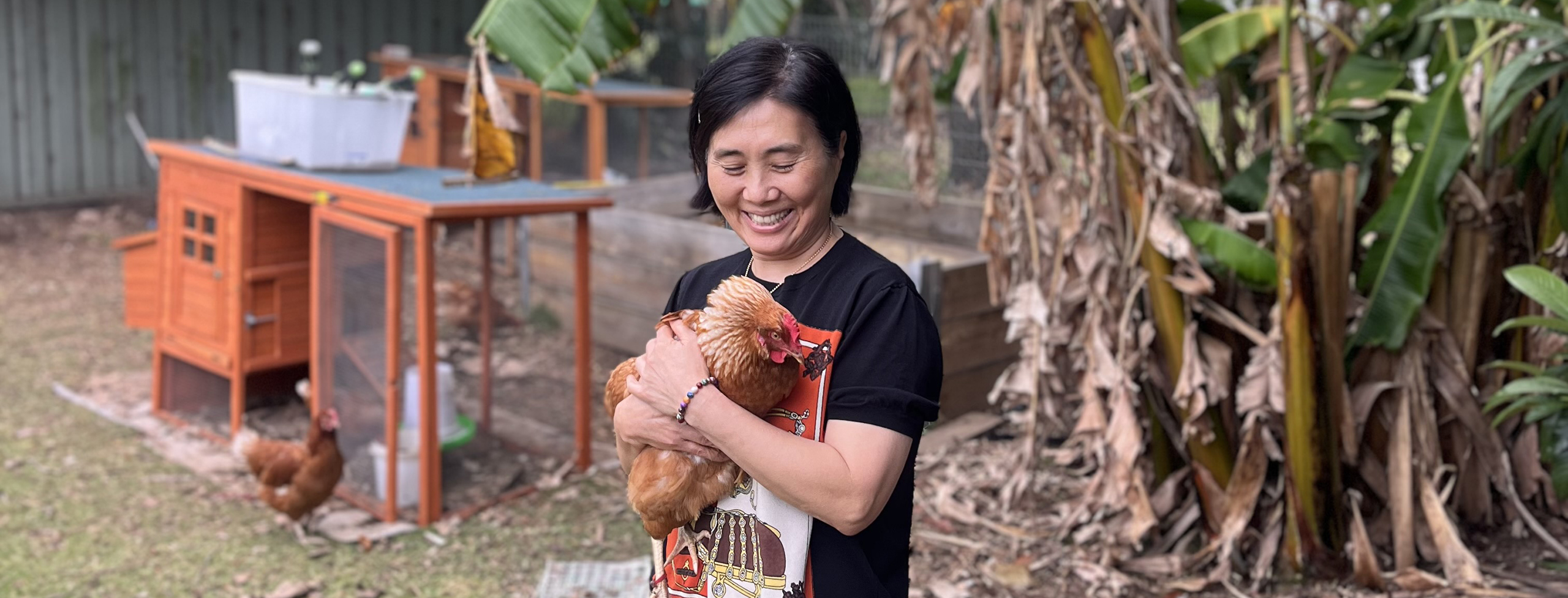 Another resident, C, who once worked as a farmer, has found joy in keeping chickens. This hobby started as a way to reconnect with his past and has become a productive routine. He cares for the chickens daily, cleans the coop, and even sells the eggs. It’s a sustainable activity that brings him happiness and purpose. C is also a great cook, making a full hot breakfast every Sunday for all residents. He makes cakes for residents’ birthdays and has recently mastered the art of making a pavlova!